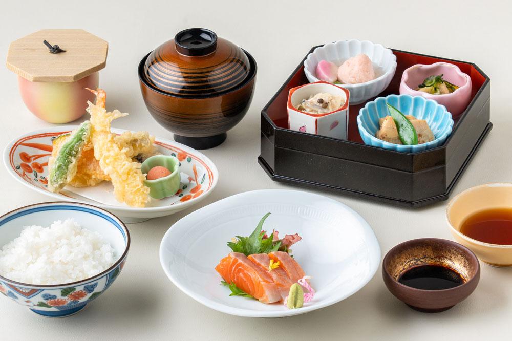 | メニュー | <お造り> 本日のお造り一点盛り <小付け> 海老つみれ 湯葉ちりめん むき浅利紫蘇若芽風味 やわらか筍土佐煮 <天麩羅> 海老 鱚 野菜三点 <蒸し物> 茶碗蒸し <食事> 白ご飯または十六穀米 <椀物> 味噌汁 |