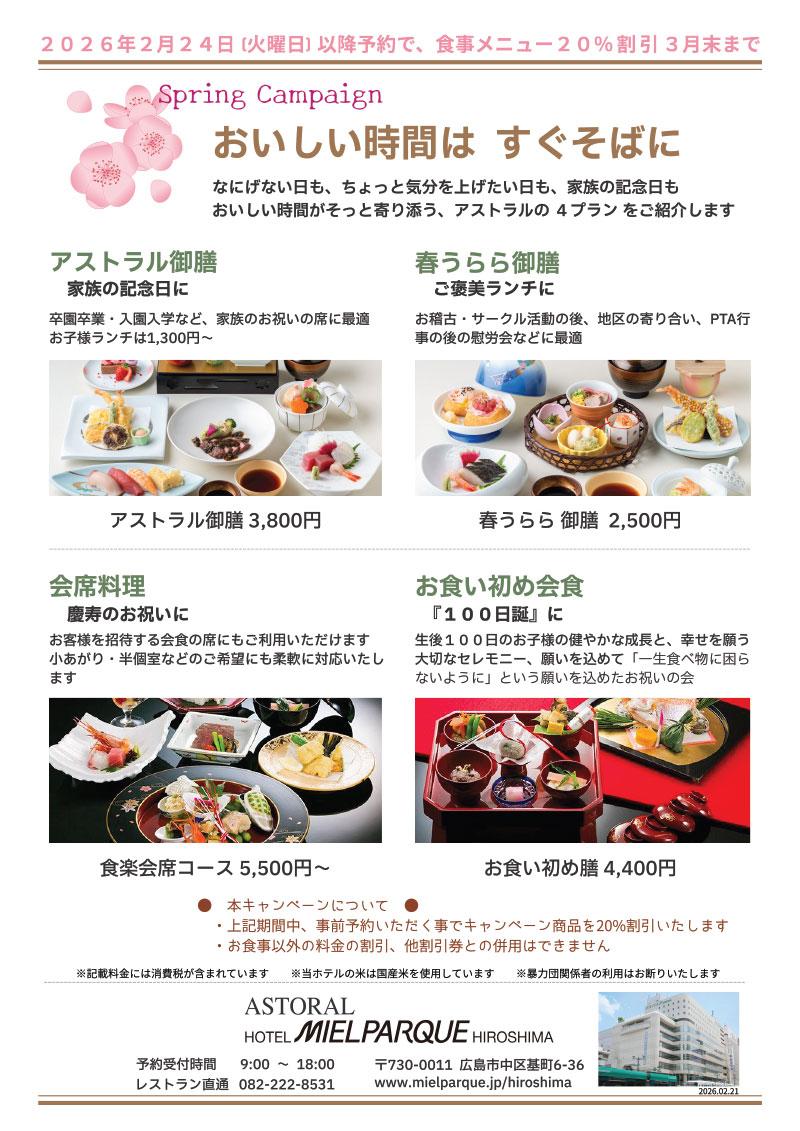 レストランランチメニュー2026年2月1日(日)~3月31日(火)