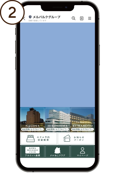 館内ポスターや公式サイトの2次元コードから、メルパルクグループ公式LINEを友だち追加してください。