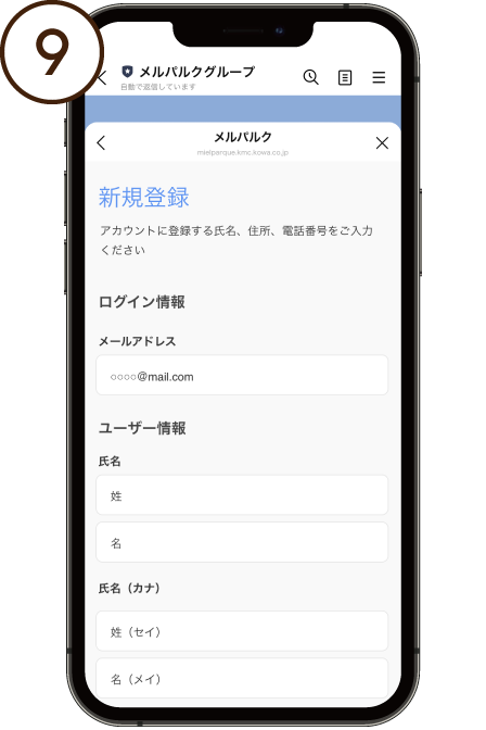 お名前やメールアドレスなど必要情報をご入力いただき、登録完了となります。