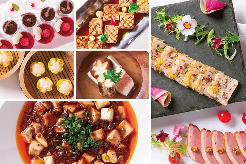 中国料理 | 《温菜》 ・水餃子のホンユーソース 《炒菜》 ・豚肉と季節野菜のあっさり炒め 《招牌菜》 ・横濱中華街の『極み麻婆豆腐』 《飯菜》 ・鶏肉と野沢菜の炒飯 《炸菜》 ・白身魚のカダイフ巻き揚げ 《是日小吃》 ・本日の蒸セイロ 《甜点心》 ・杏仁露 × 紅あずま 《湯菜》 ・干し椎茸と玉子の中華スープ(隔週) 《サラダコーナー》 ・ミックスビーンズ/ 中華春雨サラダ |