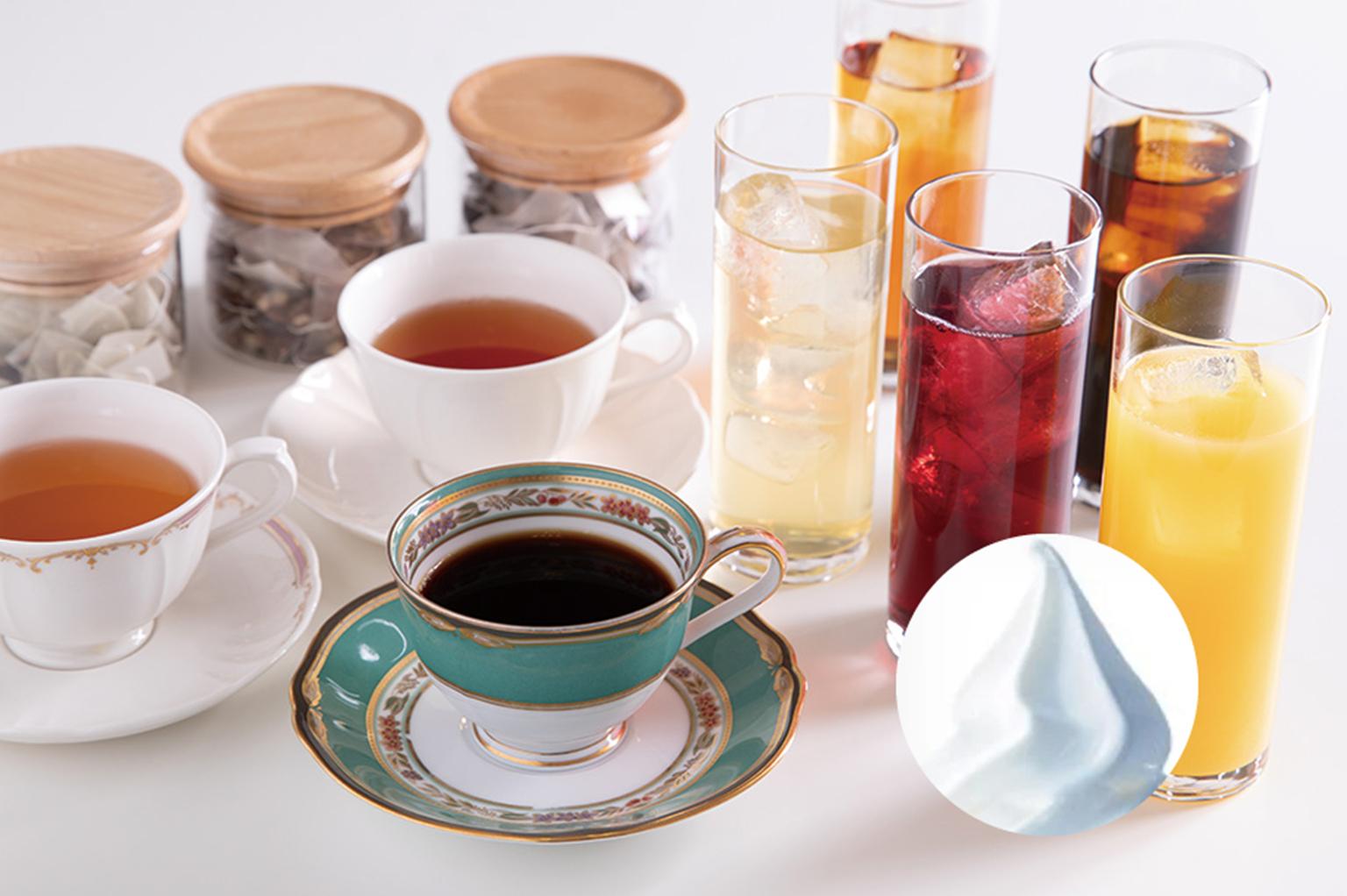 コーヒー (HOT/ICE) / 紅茶(HOT/ICE) / ウーロン茶 / オレンジジュース /グレープジュース/アップルジュース / 季節のフレーバーティ6種 / ソフトクリーム など |