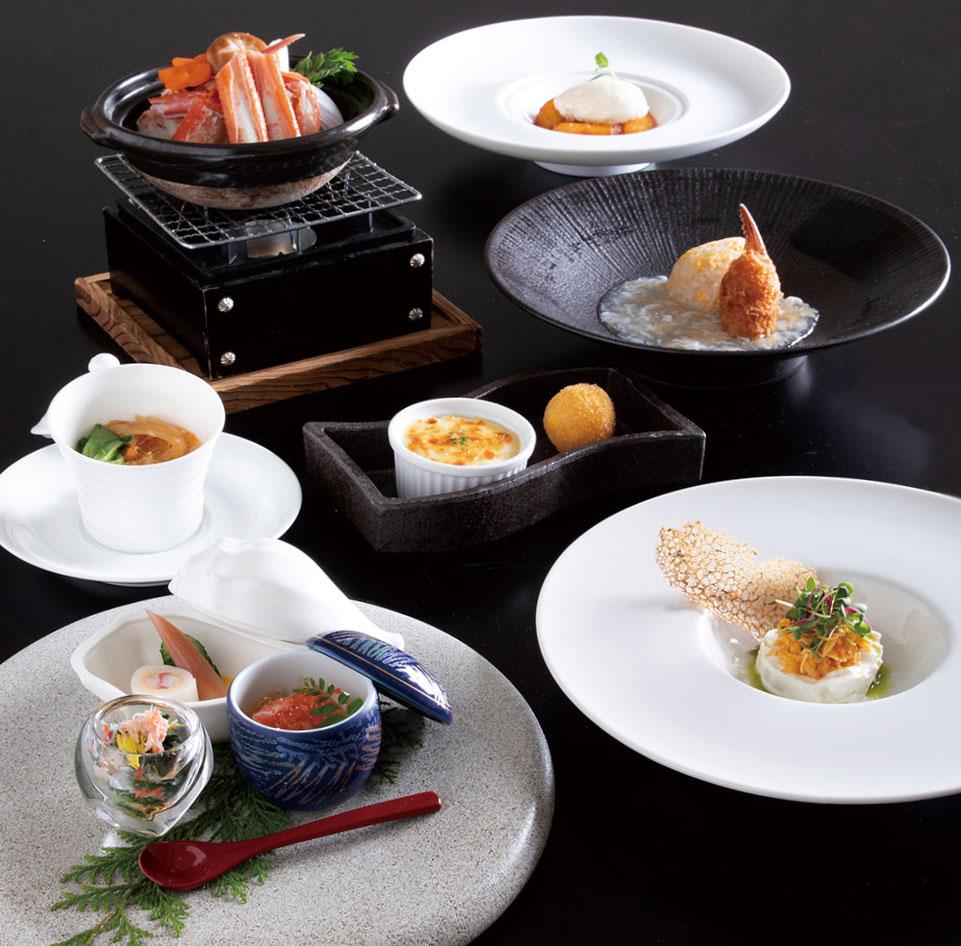 棘ズワイガニ・ズワイガニ・タラバガニ・上海ガニ・丸ズワイガニの五種の蟹を贅沢に使用し、和・洋・中それぞれのシェフが技を活かして仕立てた折衷コース。