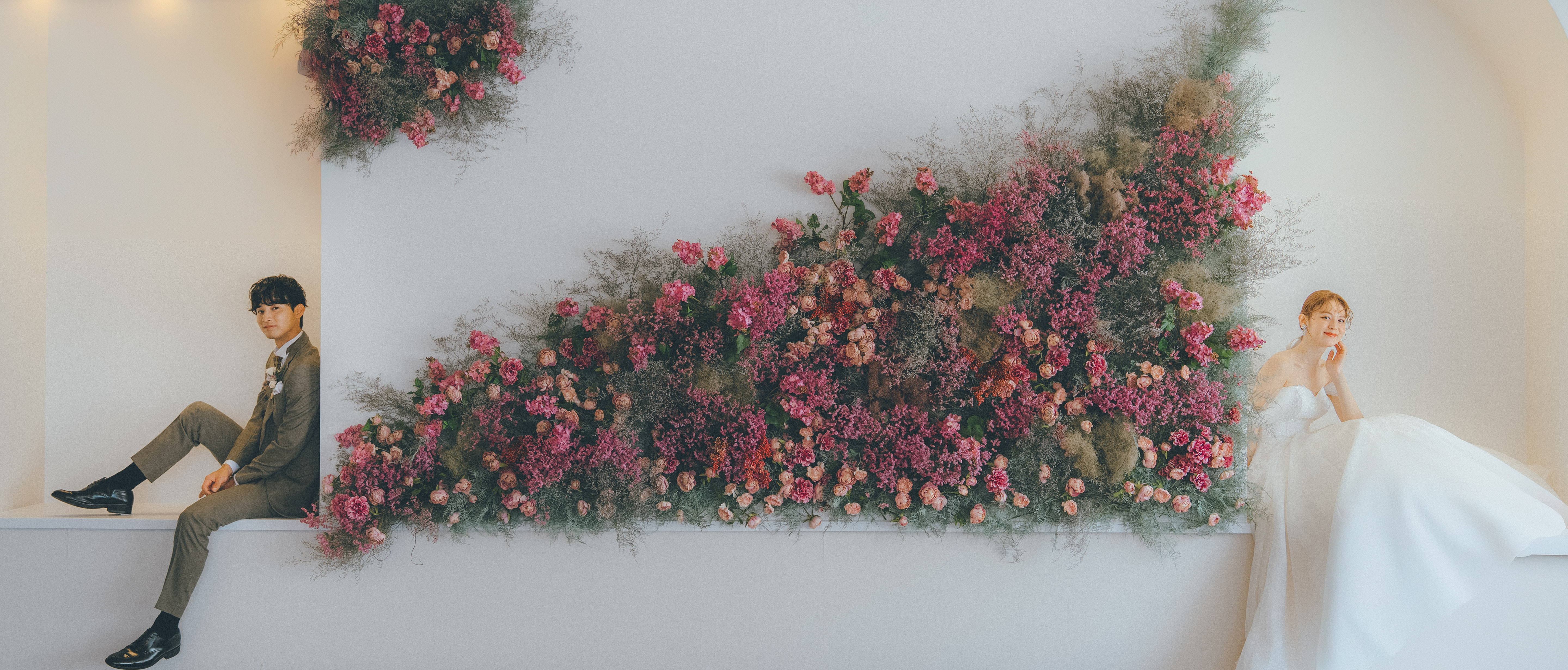 かけがえのない瞬間のお写真もウエディングフロアが華やかにいたします。